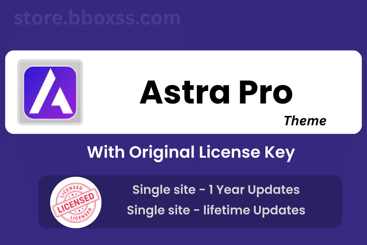 Astra Pro Theme With Original License Key is one of the world’s fastest and most customizable WordPress themes. Trusted by over 2 million websites, Astra Pro empowers you to create stunning, lightweight, and fully responsive websites with professional design control. It includes 300+ Starter Templates and the complete Astra Pro Addons Pack for enhanced flexibility and functionality. Whether you’re a freelancer, agency, or business owner, Astra Pro helps you build professional-grade websites with zero coding.